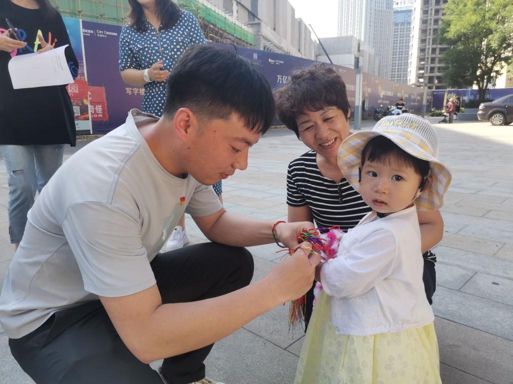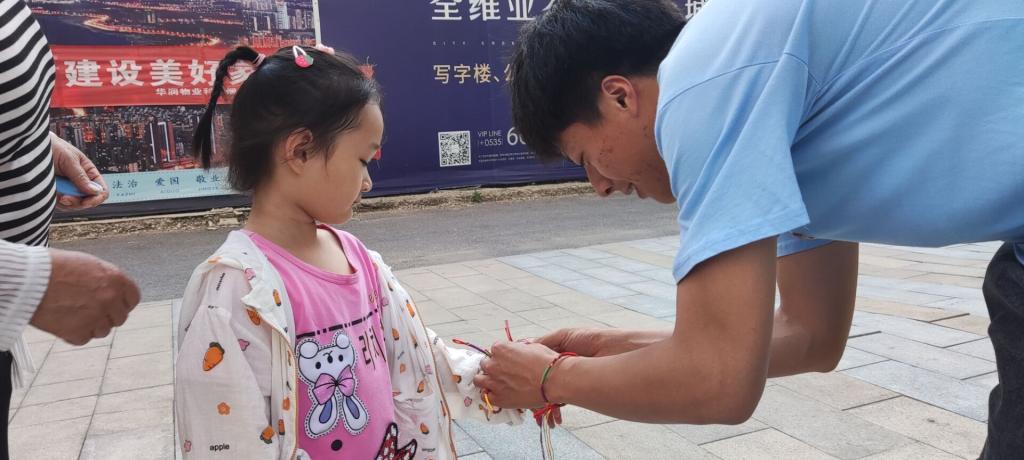 “轻汗微微透碧纨,明朝端午浴芳兰。流香涨腻满晴川,彩线轻缠红玉臂,小符斜挂绿云鬟,佳人相见一千年。”宋代词人苏轼的笔下,就曾出现了端午系五彩绳的习俗。为孩子系五彩绳是端午节的重要习俗,它有祈福纳吉的美好寓意。为了给华润社区的老人和孩子送上祝福,爱影视