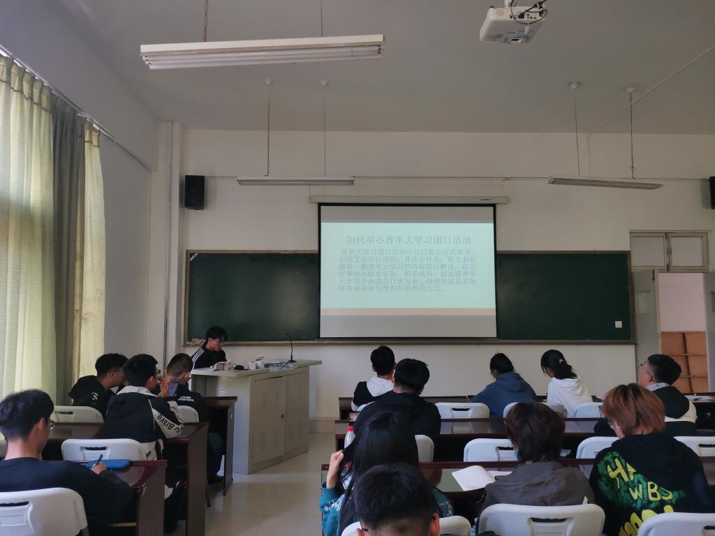 “青年兴则国家兴,青年强则国家强”。会议伊始,张志浩详细介绍了有关青年大学习。这是共青团中央组织引导广大青年深入学习贯彻习近平新时代中国特色社会主义思想和党的十九大精神的青年学习行动,使得20级新学生干部对青年大学习的了解更进一步。随后,在张志浩的指导下,各学生干部学习并操作了如何加入团支部,为进一步学习青年大学习做好准备。青年大学习的团日活动是各班级了解时事热点的中心,学生干部每周需组织成员一起观看青年大学习,并由成员代表发表新的感想以及提高成员参与度和积极性。紧接着,宣传部部长贾国乐介绍了每周团日活动的具体要求,并要求学生干部负起责任,在学习、工作、生活方面严格按照十九大精神去贯彻落实,突出强调了团日活动的重要性,鼓励大家开展主题鲜明,形式丰富的团日活动。至此,本次会议圆满结束。