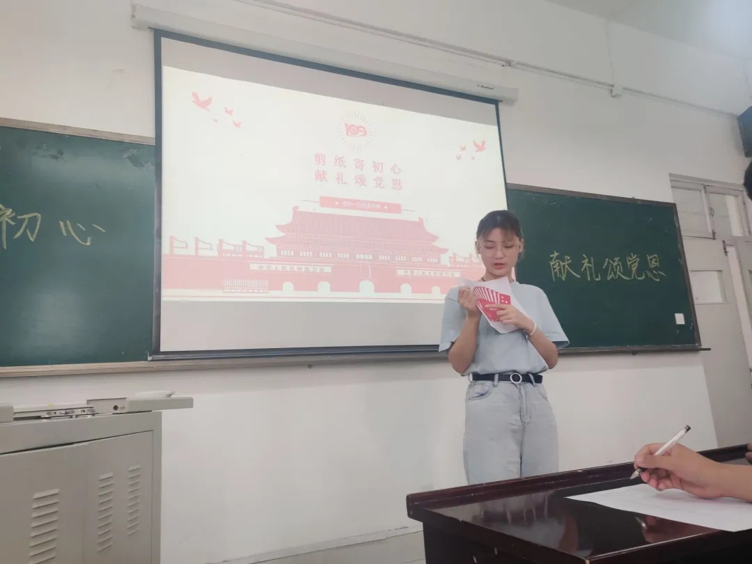 大赛伊始,主持人宣读了比赛规则,工作人员分发工具,剪纸大赛正式开始。同学们灵巧地操动剪刀,在鲜红的纸上游走,一个个生动的图案跃然呈现在眼前:南湖红船、党旗飘扬、杜鹃牡丹、改革开放、脱贫攻坚……一组组反映中国共产党百年来从无到有、艰苦奋斗的剪纸作品不断涌现。百年来的点点滴滴,从嘉兴红船上召开的中共一大,到党领导着中华民族赶跑侵略者,建立新中国,再到改革开放,决胜脱贫攻坚,实现中华民族伟大复兴的中国梦。中国共产党一路走来,披荆斩棘,克服了千难万险。热火朝天的创作阶段告一段落,随后是作品介绍环节。参赛同学手持作品,依次上台向评委老师和同学们介绍自己的作品。值得一提的是,杨楠同学所创作的《喜迎党百年》,以栩栩如生的燕子与寿桃形象,喜迎党的百年华诞,受到评委老师和同学们的喜爱,拿下本次剪纸大赛的一等奖。至此,剪纸大赛圆满结束。