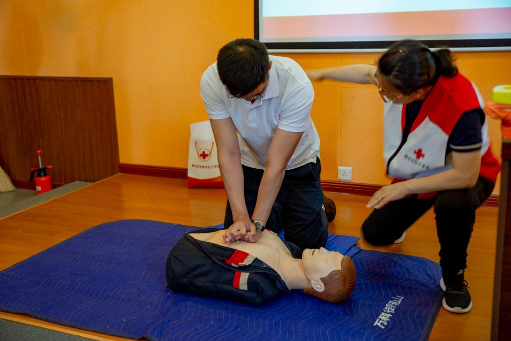 培训过程中,培训师过硬的专业能力、生动的讲解以及精湛救护技术的展示令在场师生印象深刻。培训最后,师生们纷纷上手实际操作,红十字会成员一对一指导,提示要点,纠正错误动作,力求每一个动作标准、到位。通过理论讲解辅导和实操演练,师生们更加切实地了解和掌握了应急救护知识,提高了应对突发事件的现场救护能力。