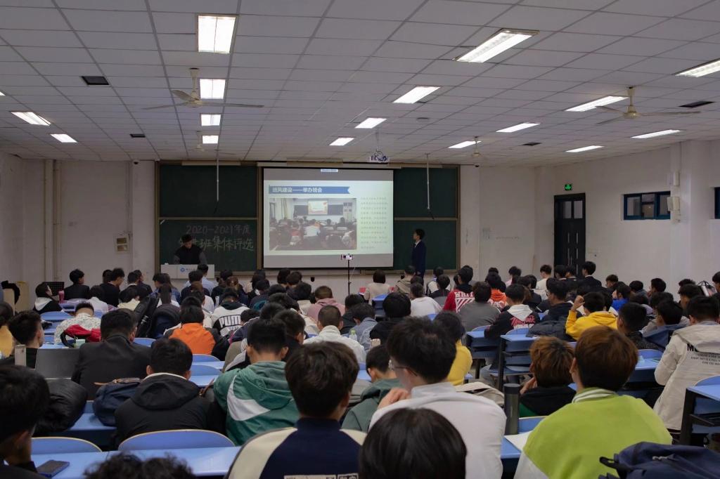 经过班级积极申请,学院严格审查,共推选出10个班级参加先进班级集体答辩会议。答辩人围绕班级概况、学风建设、宿舍管理、文体活动、科技创新等方面介绍了上一学年班级所取得的优秀成绩。其中,机191-5班通过“绝对帮扶政策”和“舍长责任制度”两大特色方法,生动阐述了“班级团结互助,师生友谊情深”的深刻含义,也为其他班级日常管理和文化建设提供了可靠和可行的路径。各位评委根据答辩人现场发言以及图文并茂的申报材料,以公平、公正、公开的原则对班集体进行打分,并由学生会办公室学生干部算出最终成绩。会议的最后,李晓萍老师作总结发言,她肯定了以上10名班集体的优异成绩,表示先进班集体要继续保持自身先进性,发挥在学院的模范带头作用,并鼓励21级独立、担当,积极向优秀班集体学习。至此,本次先进班集体答辩会议落下帷幕。