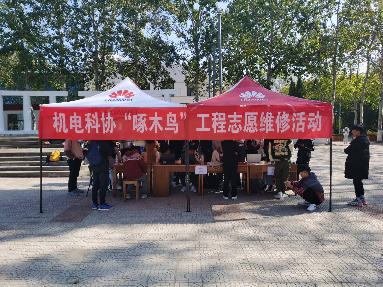 于北校区青春广场开展“啄木鸟”志愿维修活动,近百名机电学子参加本次活动,共计维修电脑40余台。