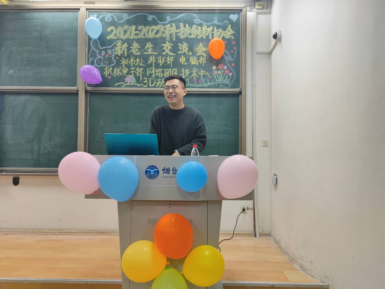 于五教301室举办科技创新协会新老生交流会,二百余名机电学子参与其中。
