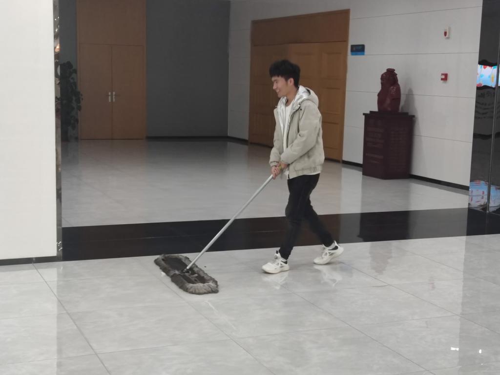 活动开始前,志愿者们按时到达集合地点并进行签到,在负责老师的带领下进入了图书馆。活动伊始,志愿者们分为两组,分别负责清洁整理安全通道和一楼大厅。负责老师将各组成员带到工作地点,向志愿者们分发清洁工具并交代了工作的范围及注意事项。在各项事宜明确之后,志愿者们迅速进入工作状态。清洁安全通道的志愿者分工明确,分别负责擦拭通道楼梯的护栏、清洁楼梯台阶和打水冲洗抹布及拖把。他们配合默契,干劲十足,不怕垃圾异味,有序地开展清洁。此外,志愿者们还在负责老师的指导下,将可能妨碍通行的杂物清除,以消除安全隐患。在清洁大厅的工作中,志愿者们同样认真细致。他们先用平板拖把将地面的碎屑和粉尘清除,再使用胶棉拖把解决难以擦除的污渍。经过两个小时的认真工作,清洁图书馆的任务顺利完成。最后,志愿者们在图书馆前合影留念。至此,爱影视