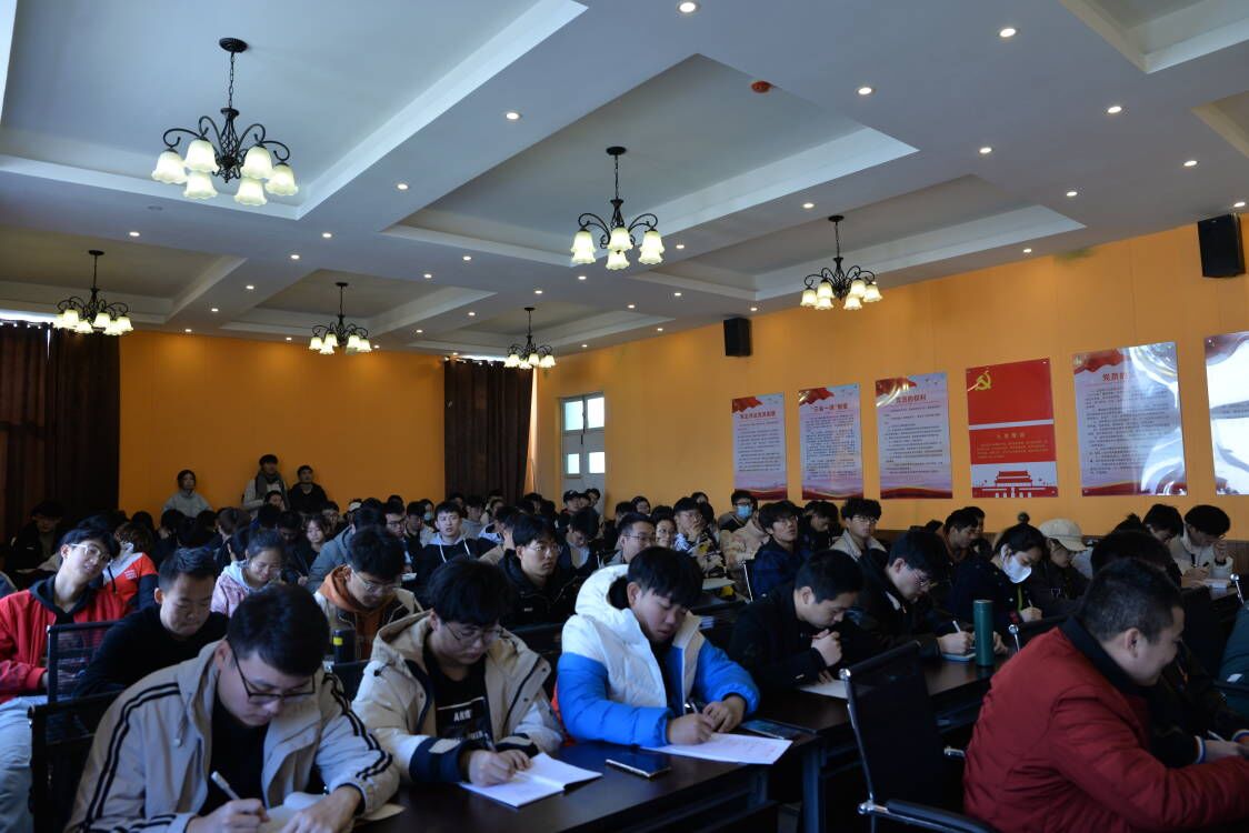 环校越野赛跑的安全问题;张新莉老师鼓励大家积极参与反诈防骗知识竞赛,强调各团支部尽快整合材料,完成好团支部对标定级的工作;王才老师鼓励大家做好考研冲刺,强调国考省考的安全问题和请销假制度,鼓励大家积极参加学院的就业活动;马宝林老师强调班长要把好奖学金申请表第一关,并鼓励大家积极浏览学院官微。最后,辅导员老师们分别组织各年级班干部进行单独会议,将工作进一步细化至年级。至此,本次班团例会圆满落幕。