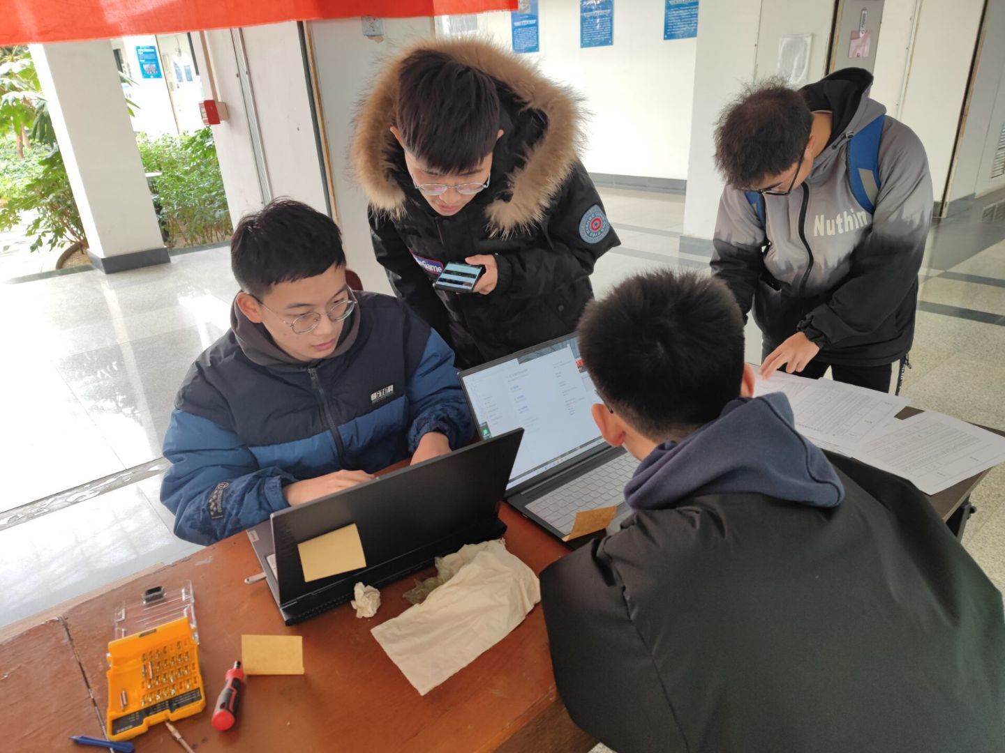 活动开始之前,为保证活动的顺利进行,志愿者们提前来到机电院馆布置场地,将维修工具准备齐全。尽管活动当天天气寒冷,但是同学们仍然热情不减。活动伊始,便有大批的同学前来维修电脑和安装软件。本次维修活动包括软件方面的病毒查杀、系统重装、软件安装,硬件方面的机箱内部的灰尘清除、电源的灰尘清除等,志愿者们按照部门职能进行合理分工,维修活动有序开展。值得一提的是,21级新生志愿者们在经过前几次志愿活动的历练后,已经熟练地掌握软件安装和电脑清灰的技巧,并主动加入到维修行列里来。新生志愿者代表韩昊洋在安装软件的同时为周围同学讲解电脑软件相关知识;首先,他向同学们展示了安装软件的安装包,找到安装程序后打开,随后,他根据安装向导指示选择安装路径,完成安装,最后,将安装软件成功激活。韩昊洋的熟练操作赢得了周围同学的一致认可,大家纷纷围在电脑前认真学习。在一片热闹的氛围中,本次“啄木鸟”志愿维修活动圆满结束。