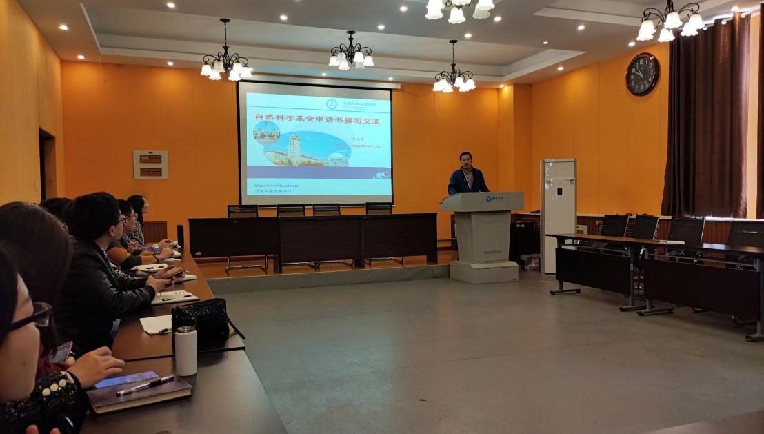 首先,于涛对学院2022年度国家和省自然科学基金立项情况作了总结分析,他指出,新进博士是学院基金申报的主力军,自然科学基金,尤其是国家青年科学基金是年轻老师幸福生活的保障,学院将从各方面助力年轻老师开展有组织的科研。通过勤于思考;勇于尝试、敢于取舍;坚定方向,持之以恒等几方面分析,让年轻老师深深的感受到学院对于自然科学基金的重视。最后,对2023年自然科学基金高质量申报进行了安排部署。学院多措并举,鼓励青年老师开展有组织科研,包括设立揭榜制开放基金、鼓励参加学术会议、鼓励年轻教师做学术报告等。
