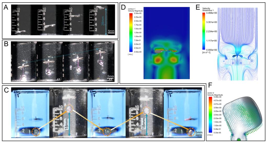 杨文广团队在跨学科一区TOP期刊SENSORS AND ACTUATORS B-CHEMICAL上发表题为《Bio-inspired propeller robot with controllable pitch driven by magnetic and optical coupling field》的学术论文。该工作受仿生思想的启发,将直升机现有的驱动形式应用在微型机器人中,制造了一种光可控变距微螺旋桨机器人。在合成的光响应复合水凝胶内部封装磁性材料,并通过磁场发生器为微螺旋机器人提供旋转动力。通过氙灯光源的照射来调节桨距,使螺旋桨变换不同的运动形式。可控变距螺旋桨机器人为微型水下航行器和微飞行器的设计提供了一种新颖的思路。