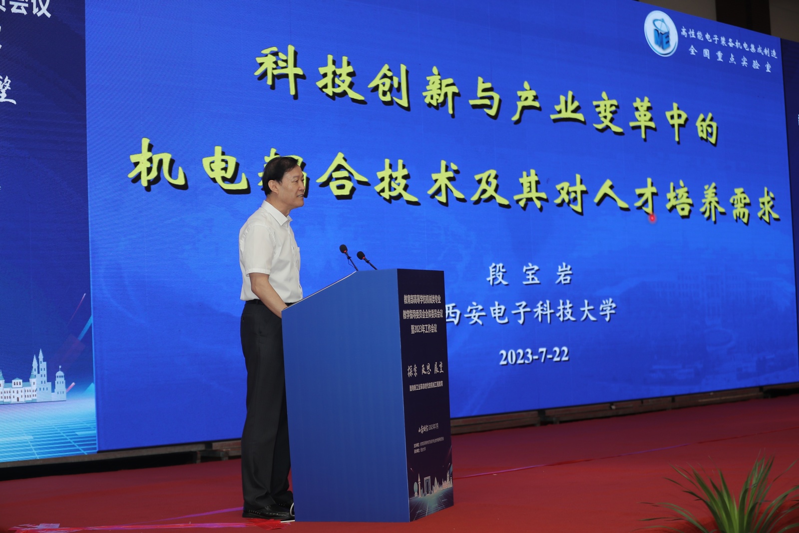 中国工程院院士段宝岩作题为“科技创新与产业变革中的机电耦合技术及其对人才培养需求”主旨报告