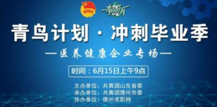 为贯彻落实全国稳就业、高校毕业生就业创业工作会议精神,按照全省稳就业工作部署,由共青团山东省委组织实施开展“青鸟计划·冲刺毕业季”专项行动,此次活动分为华为人才联盟、国有企业、专精特新“小巨人”、医养健康、青企协等5个专场招聘,针对不同专业的大学生提供优质岗位,全面促进我省大学生就业工作。第二场医养健康招聘由共青团德州市委承办,将于2022年6月15日9:00启动。本次招聘共有我省18家医养健康类企业岗位需求信息,共118个岗位招聘1284 人,所需专业涵盖药学、药物化学、分析化学、临床医学等诸多类别。参加企业将通过“线上直播间”的方式进行线上招聘,在直播中为青年人才展示企业、解答疑问,求职青年学子不要错过!