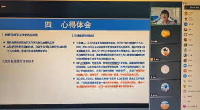张老师以自己申报《机械原理》省级一流课程为例,围绕一流课程的概述、申报材料、申报心得、申报书的撰写四个方面,向全院教师详细讲解了一流课程的申报要求和重点注意事项,让零基础教师直接掌握申报要领。她建议各位老师做个有心人,平时多留心、早做准备。同时,她结合申报趋势和“两性一度”(高阶性、创新性、挑战度)的要求,对深挖课程思政、结合自身特色等方面提出了宝贵的建设性意见。