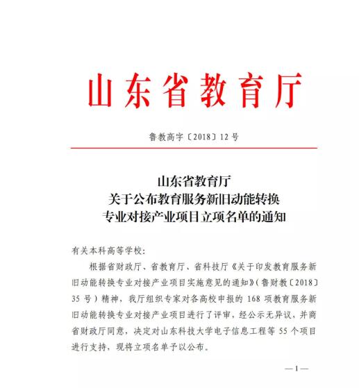 月获批山东省教育服务新旧动能转换产业对接专业—高端装备专业群(全省仅